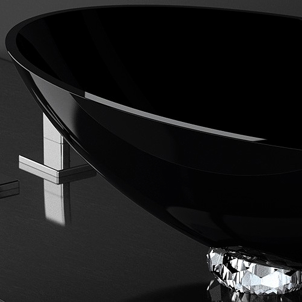 COLLIER lavabo ovale da appoggio in purissimo cristallo nero 24% pb, con base in cristallo trasparente sfaccettata. L’esclusivo cristallo nero si innalza su una basetta dal pi’ trasparente cristallo. Prodotto dalla severa raffinatezza, elegante e allo stesso tempo contemporaneo. Dalle più antiche e nobili ari vetrarie nasce la collezione cristallo.