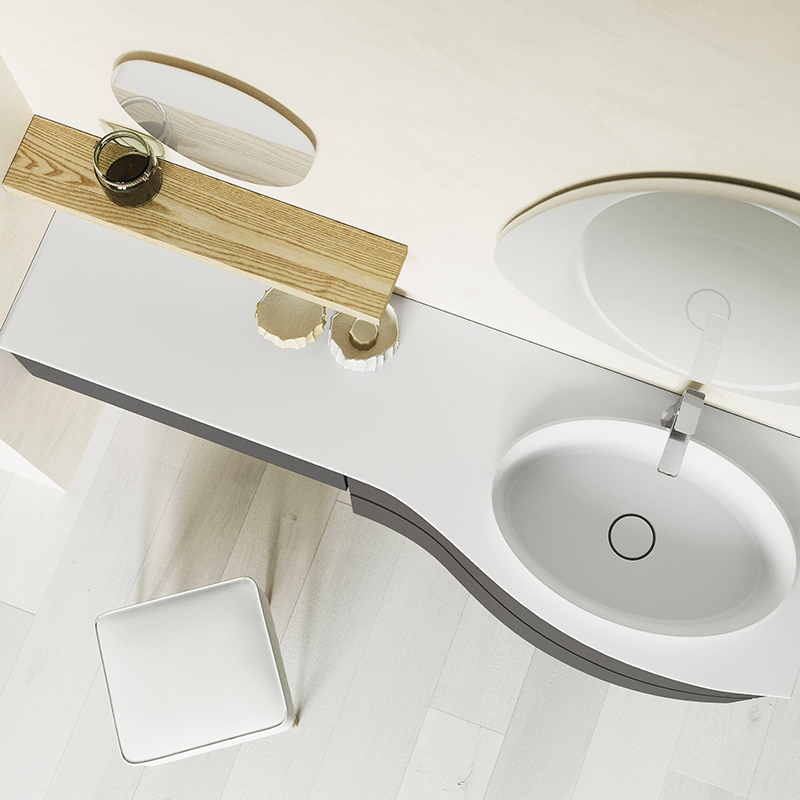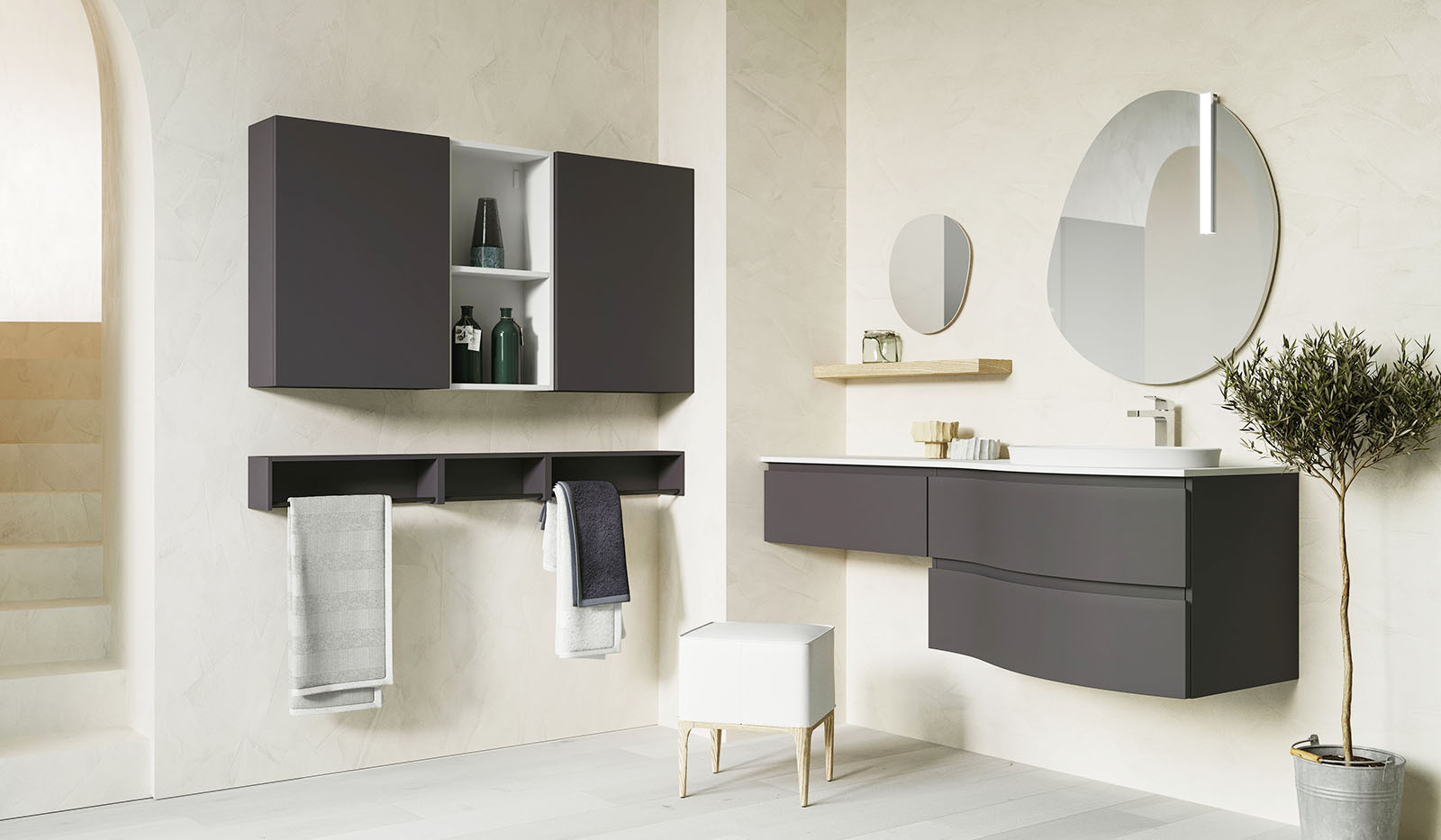 Incanto: forme sinuose, praticità e design. Mobiltesino presenta Incanto, una collezione elegante che trasforma il bagno in uno spazio originale e accogliente. Con aperture a gola e profilo sagomato sul frontale, la collezione offre forme sinuose e praticità. Il legno di frassino, con le sue splendide venature, dona un tocco contemporaneo e tattile. Incanto include specchiere integrate con illuminazione, accessori personalizzabili in legno e metallo, top integrali in vetro satinato e top in ocritech bianco opaco e lucido.